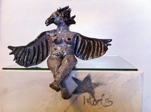 Sehr spannend finde ich den Weg in die dritte Dimension meiner Bilder. Mit einer Töpferei im Haus, ist der Weg zum Ton nicht weit. So formte und forme ich immer wieder Figuren aus Ton. Daneben entstanden lebensgroße Figuren aus Papiermaché. Die grossem blaue Kugel vor unserer Galerie ist aus Fiberglas und Kunstharz mit einem Styropor Kern gefertigt. Die ebenfalls blauen Figuren, sowie die auf unserem Dach ausgestellten Wasserhähne wurden für die Ausstellungen, unter dem Titel HORIZONTE und COMO AGUA konzipiert.